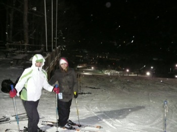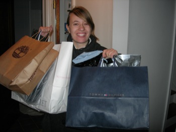 Also hier hab ich noch ein paar schoene Bilder. Unser traditionelles Empfangsessen im BigBoy. Da hat Anne aber Augen gemacht. Hinter uns lag erstmal ein 3 taetiger Shoppingmarathon. Diese Seite von Amerika hab ich der Anne außführlich vorgeführt. Haben den guten EUR/USD Kurs von 1,41 und den hervoragenden EUR/kanad. Dollar Kurs von 1,72 genutzt und haben 3 umliegende Outlets abgeklappert. Einige Errungenschaften: Columbia Skijacke für Anne für 30EUR, Adidas Trekkingschuhe für 12 EUR. Und natuerlich ein Haufen Prolo-Shirts von Hilfiger, Boss und Co. Ein Traum -haette nie gedacht, dass mir shoppen soviel Spass macht. Wir waren regelrecht im Rausch. Silvester haben wir zu zwoelft auf der Skihuette verpracht. Waren bis 21 Uhr auf beleuchteten Skipisten unterwegs. Mitternacht haetten wir fasst verpasst, weil wir einerseits vollgefressen vom BBQ waren und daraufhin fasteingeschlafen waeren. Andererseits ist in Michigan kein Feuerwerk erlaubt und deswegen war da auf keins. Haben fünf nach zwölf mal 2 Böller ausm Fenster gehaun und denn Feuerzangbowle gemacht und geguckt. Alles in allem also ein seehr gemütliches Silvesterfeste.