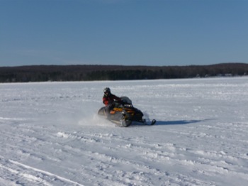 Ein bischen verspätet kommt heute der Bericht zum letzten Wochenende: Wir sind wieder in die gemütliche Hütte von Silvester gefahren um uns eine Winterwald-Ralley, genannt „SnoDrift“ anzusehen. Es war mal wieder ausgesprochen kalt und man hat laenger am Rand gewartet als das man mal was gesehen hat. Aber der richtige Hammer waren die 2 Snowmobile, die wir uns für 23h haben ausgeliehen. 500ccm 2Takt Motoren, d.h. man hat schoen gestunken und es ging auch ordentlich nach vorne. Schoen mit Griffheizung und so. Hannes und ich hatten die Frühaufsteher-Runde abbekommen, wir haben also unsere Tour am Sonntag von 7Uhr bis 11 Uhr vorgenommen. Da oben gibt es ein gut ausgebautes Snowmobil-Trail-Netz, wir sind aber auch hin und wieder auf ungeräumten Straßen und zugefrorenen Seen gefahren. Ich hätte nicht erwartet wie gefährlich diese Dinger sind. Es wurde uns allen noch mal netterweise von unserer Kerstin demonstriert, welche demonstrativ auf ihrer Tour in einen Baum geknallt ist. Sie kam ins Krankenhaus, hat aber bisweilen keine Schäden davongetragen. Ihr Freund Michi übernahm erstmal die Selbstbeteilung am gecrashten Skidoo von 1200$.