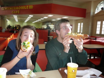 Dieser Henry war ein Messi und hat so ziemlich alles gesammelt. Das Museum ist vollgestopft mit Eisenbahnen, Kutschen, Möbeln (unter anderem dem Stuhl, auf dem Lincoln erschossen wurde), Flugzeugen, Dampfmaschinen, kompletten Kraftwerken und natürlich Autos. Sehr beeindruckend sind die Präsidenten Limousinen. Darunter auch jene, in welcher Kennedy erschossen wurde. Nach einen eckligen Oscar-Meyer-Wiener Hot Dog und 5h hat das Museum endlich geschlossen und Hannes, Anne und ich konnten heim. War aber wirklich wunderbar!